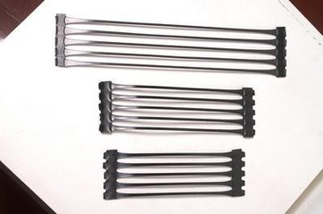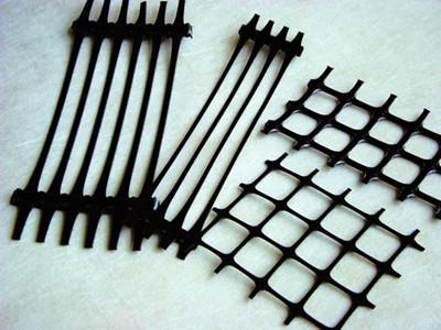 塑料土工格柵是經(jīng)過(guò)拉伸形成的具有方形或矩形的聚合物網(wǎng)材,按其制造時(shí)拉伸方向的不同可為單向拉伸和雙向拉伸兩種。它是在經(jīng)擠壓制出的聚合物板材(原料多為聚丙烯或高密度聚